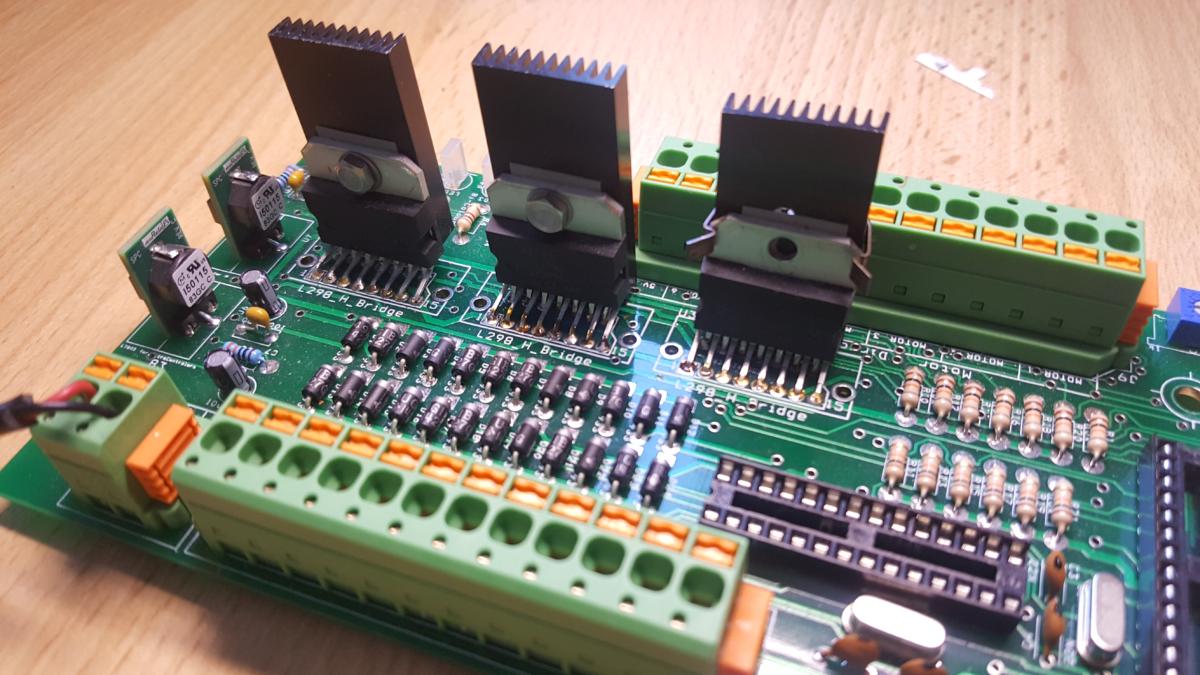 This is a 6 DC motors controller using 3 H-Bridges L298, controlled by 2 micro-controllers Atmega 328. Has been created for a project of home automations, controlling 6 windows blinds were we need them to control the speed for first 5 seconds of each motor to be be-twin 60% to 100%.